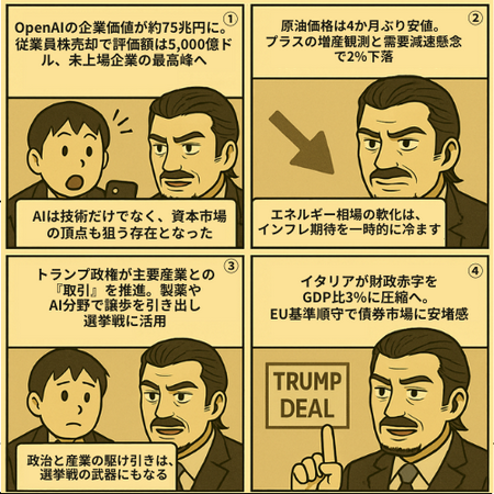 2025年10月4日 過去24時間の市場動向と経済ニュース